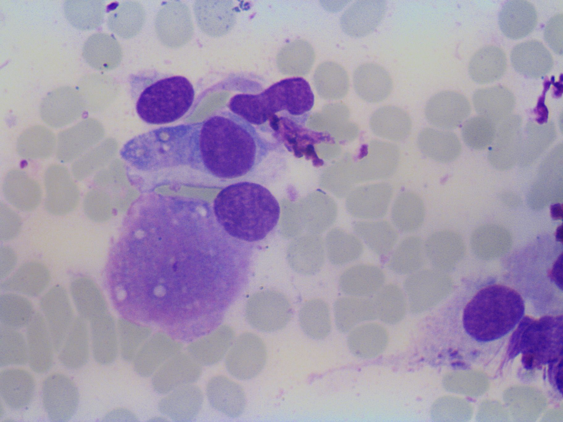 4. Fig. 4. The results of cytological studies (× 100). With a higher magnification of the microscope, cytomorphological signs of neuroendocrine differentiation (the characteristic structure of the chromatin of the nucleus — salt, pepper, and azurophilic granularity of the cytoplasm) are clearly indicated, indicating the presence of medullary cancer.