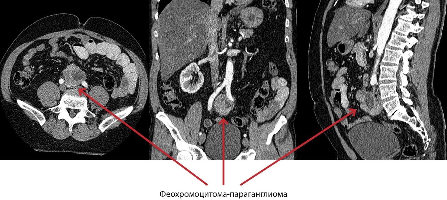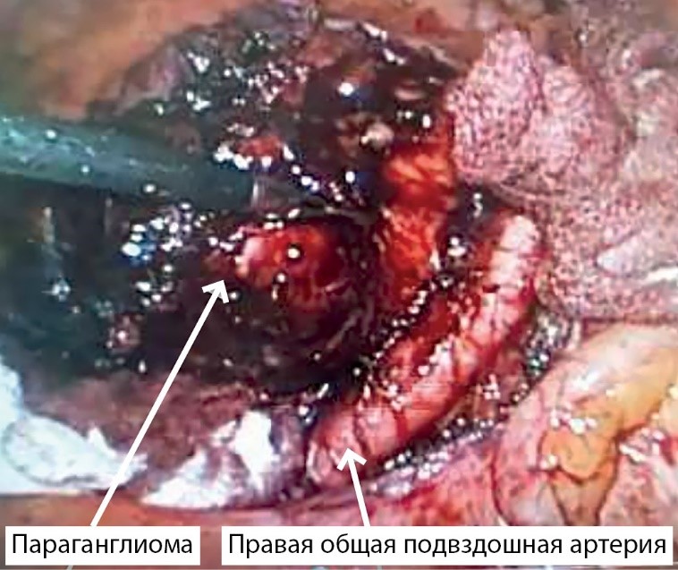 На долю параганглиом приходится 15–20% всех опухолей из хромаффинной ткани. Наиболее часто параганглиомы располагаются в брюшной полости по ходу крупных сосудов — в парааортальной области от диафрагмы до бифуркации аорты. Одна из самых часто встречаемых вненадпочечниковых феохромоцитом — опухоль Цукеркандля, исходящая из парааортального скопления симпатической ткани, расположенного в области отхождения от аорты нижней брыжеечной артерии или в зоне самой бифуркации. Вследствие технической сложности при лапароскопическом удалении параганглиом конверсия в лапаротомию является частой и достигает 80%. В статье описывается клинический случай диагностики и лечения пациента с данным новообразованием как демонстрация успешного ­радикального лапароскопического вмешательства по удалению крупной хромаффиномы, расположенной в сложной анатомической зоне.