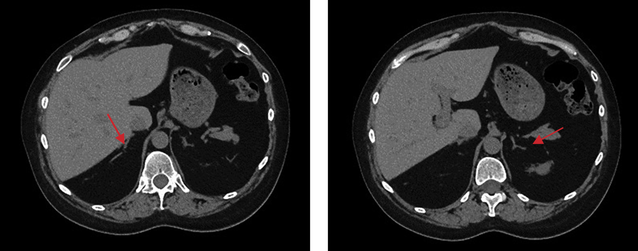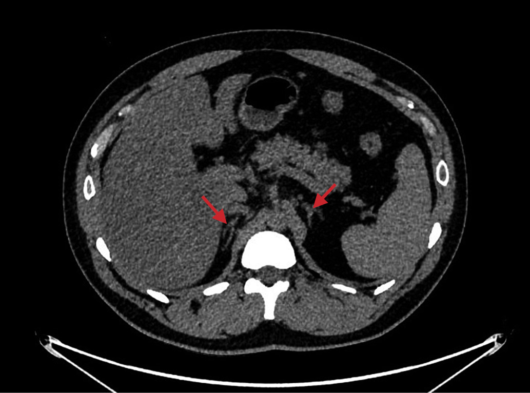 1. Рисунок 1. Мультиспиральная компьютерная томография надпочечников без контрастирования пациента №1.