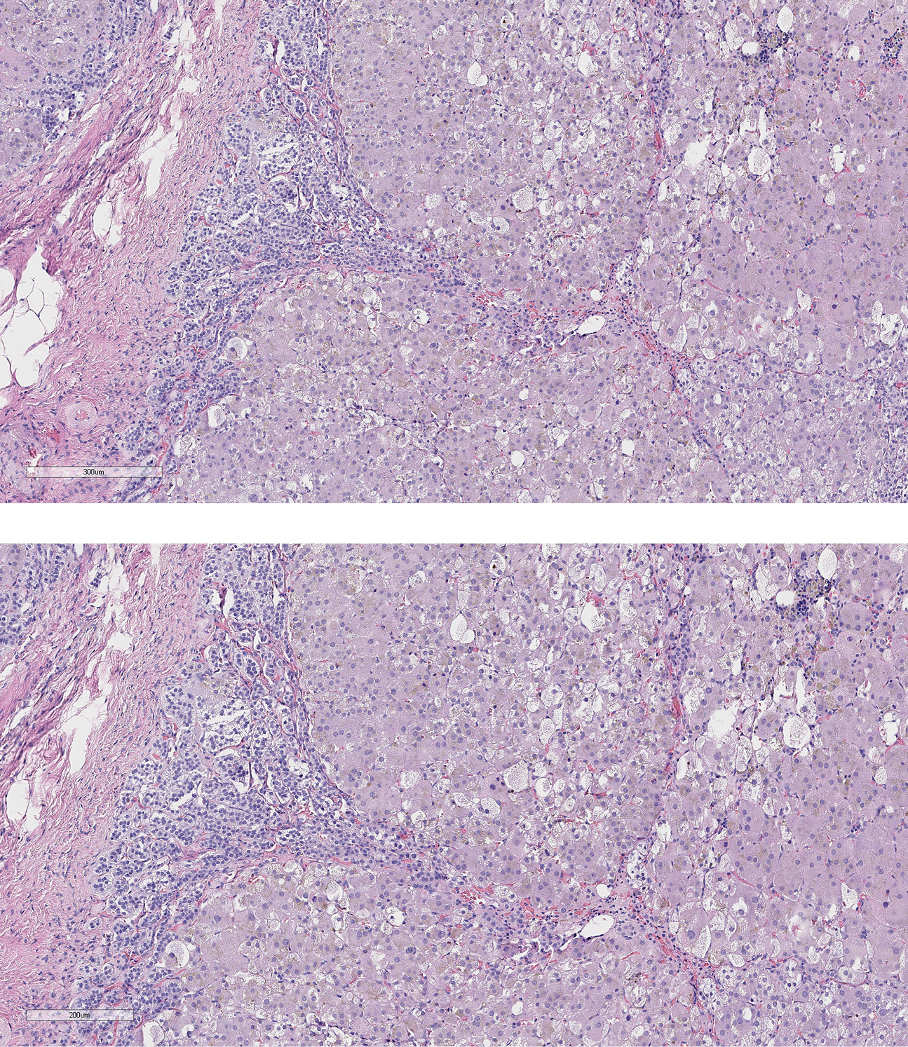 2. Рисунок 2. Гистологическая картина послеоперационного материала надпочечника пациента №1.