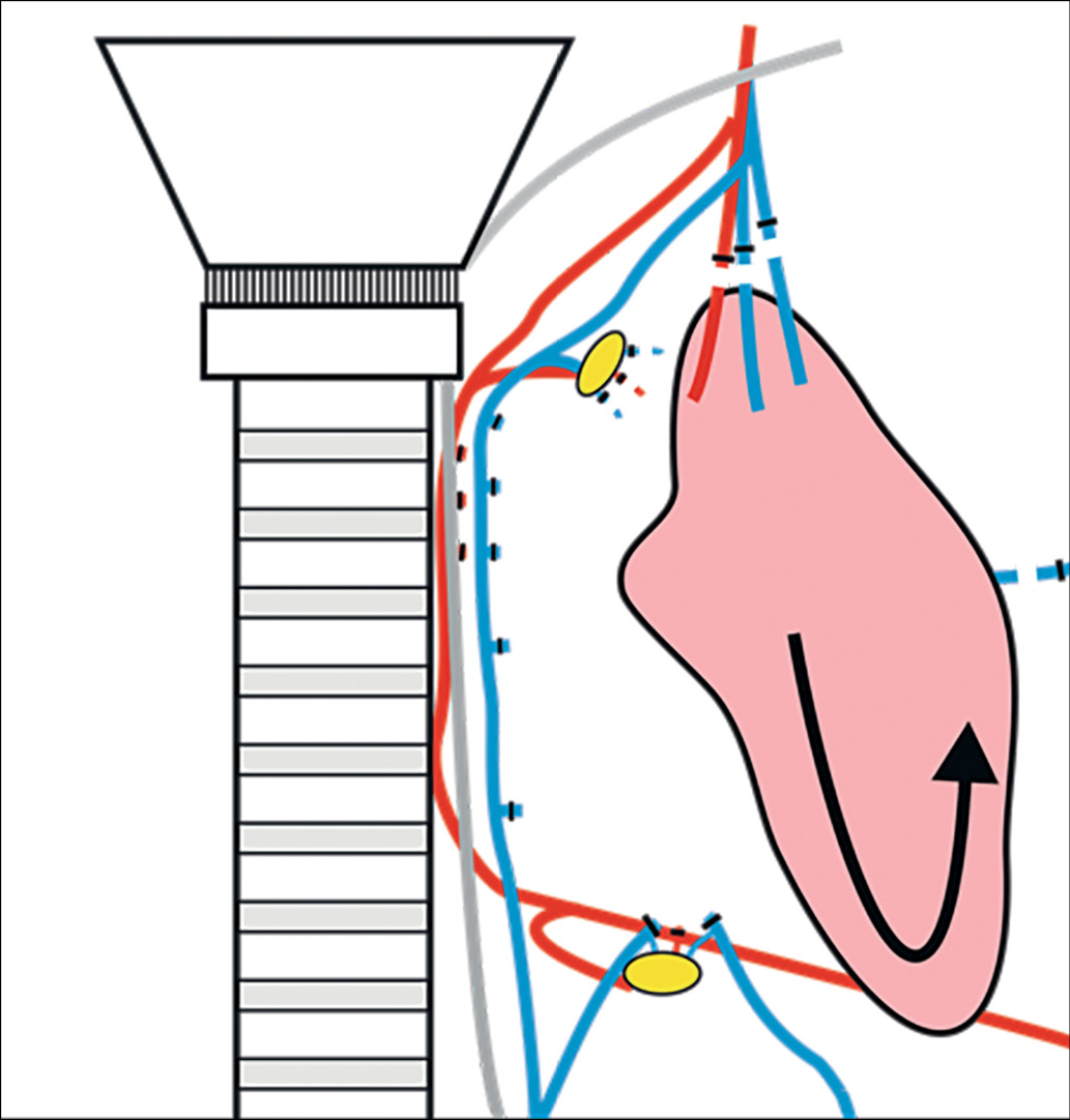 8. Рис. 8. Пересечение сосудов верхнего полюса — последний этап операции. | |