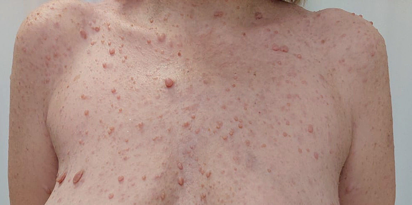 3. Рисунок 3. Множественные нейрофибромы области груди у пациентки С. | |
