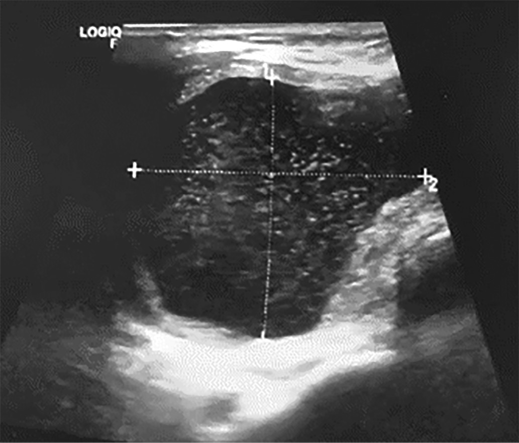 2. Рисунок 2. Кистозный компонент узла правой доли щитовидной железы.