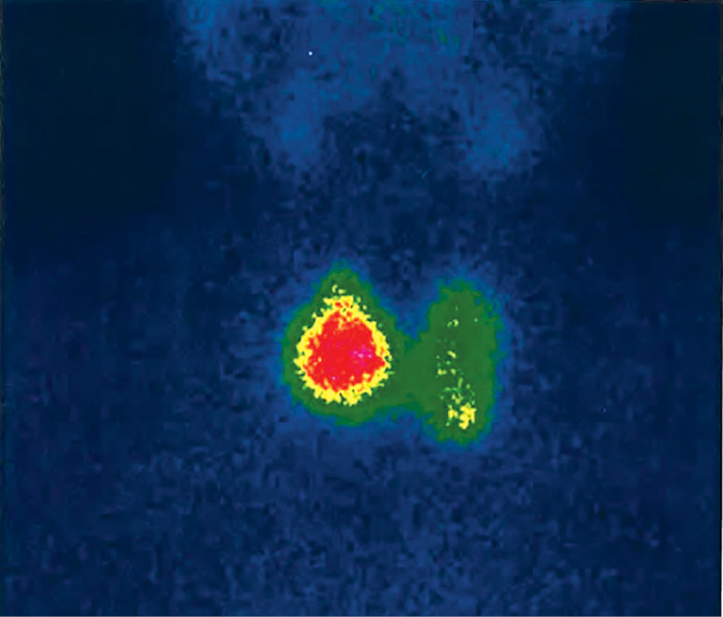 5. Рисунок 5. Сцинтиграфия щитовидной железы с 131-йодом на 24 ч после перорального введения трейсерной активности (13.10.2021).