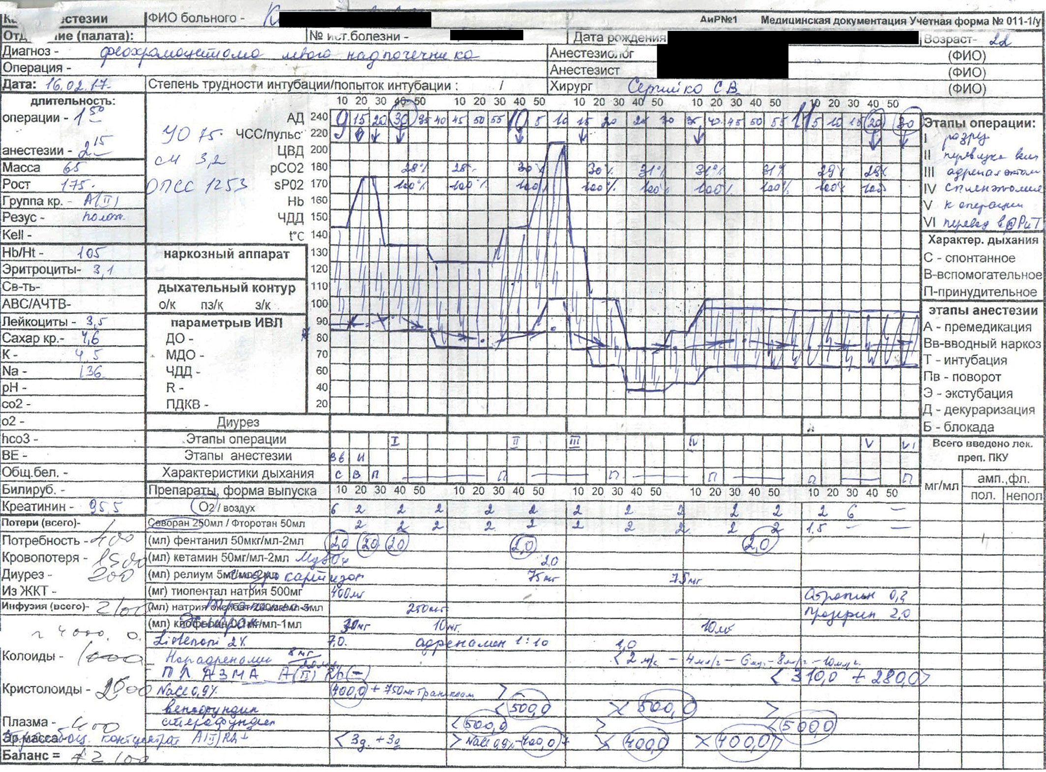 2. Рис. 2. Копия карты течения анестезии пациента К.