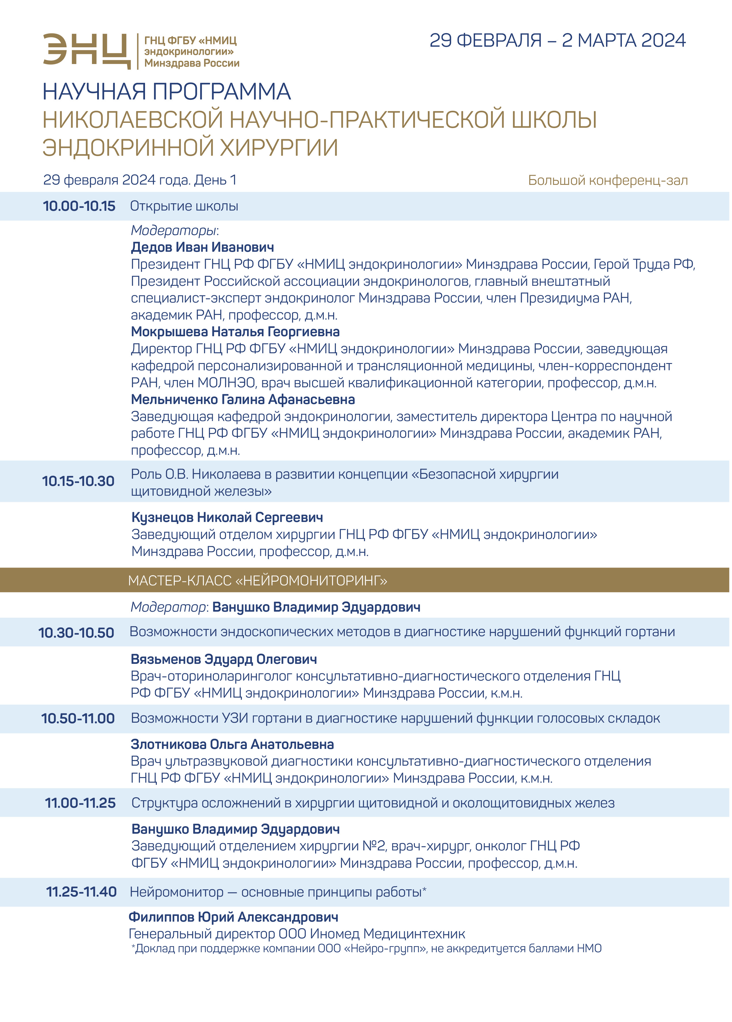2. Научная программа Николаевской научно-практической школы эндокринной хирургии (29 февраля – 2 марта 2024). 29 февраля 2024 года. День 1. 10.00-11.40.