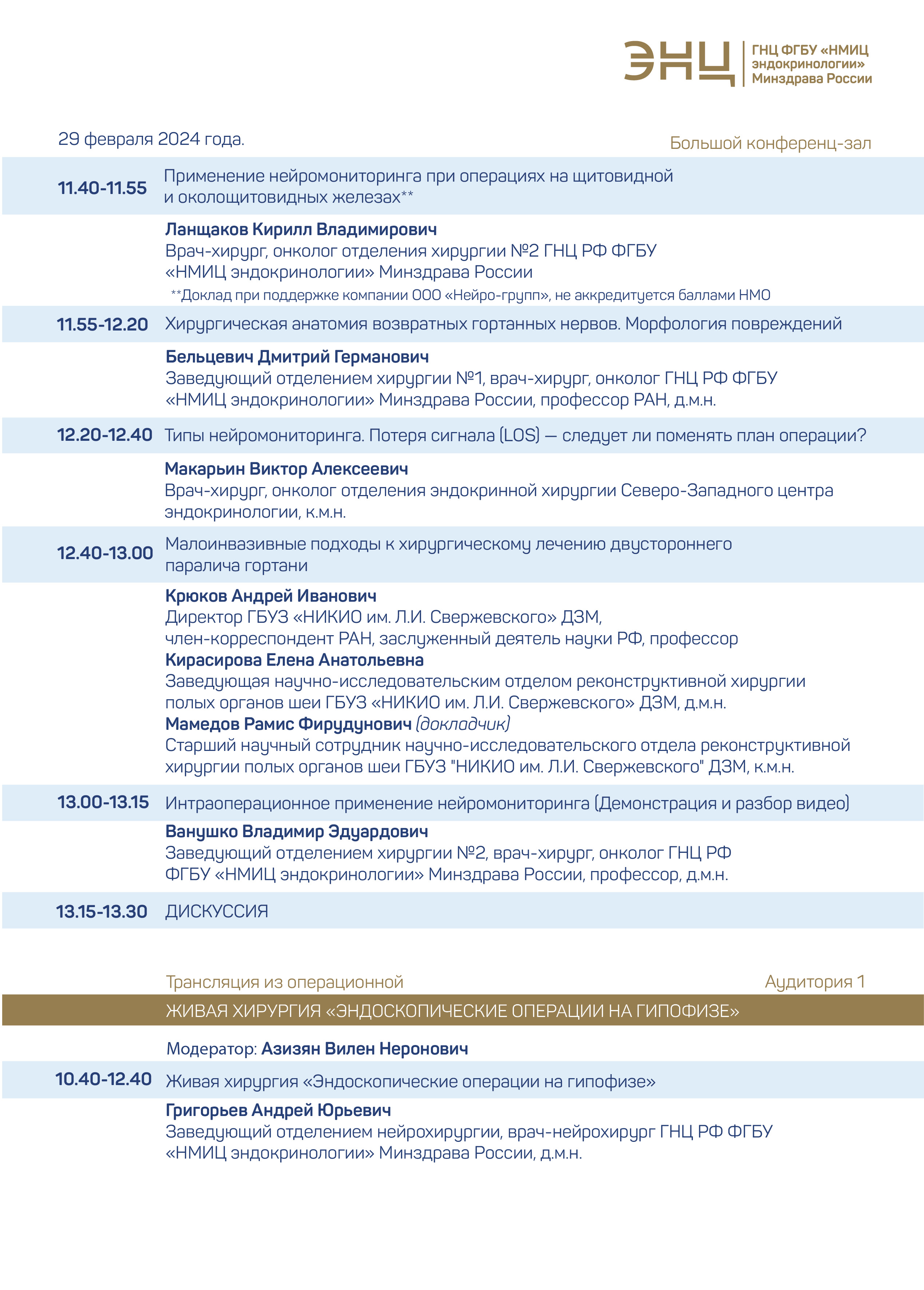 3. Научная программа Николаевской научно-практической школы эндокринной хирургии (29 февраля – 2 марта 2024). 29 февраля 2024 года. День 1. 11.40-13.30.