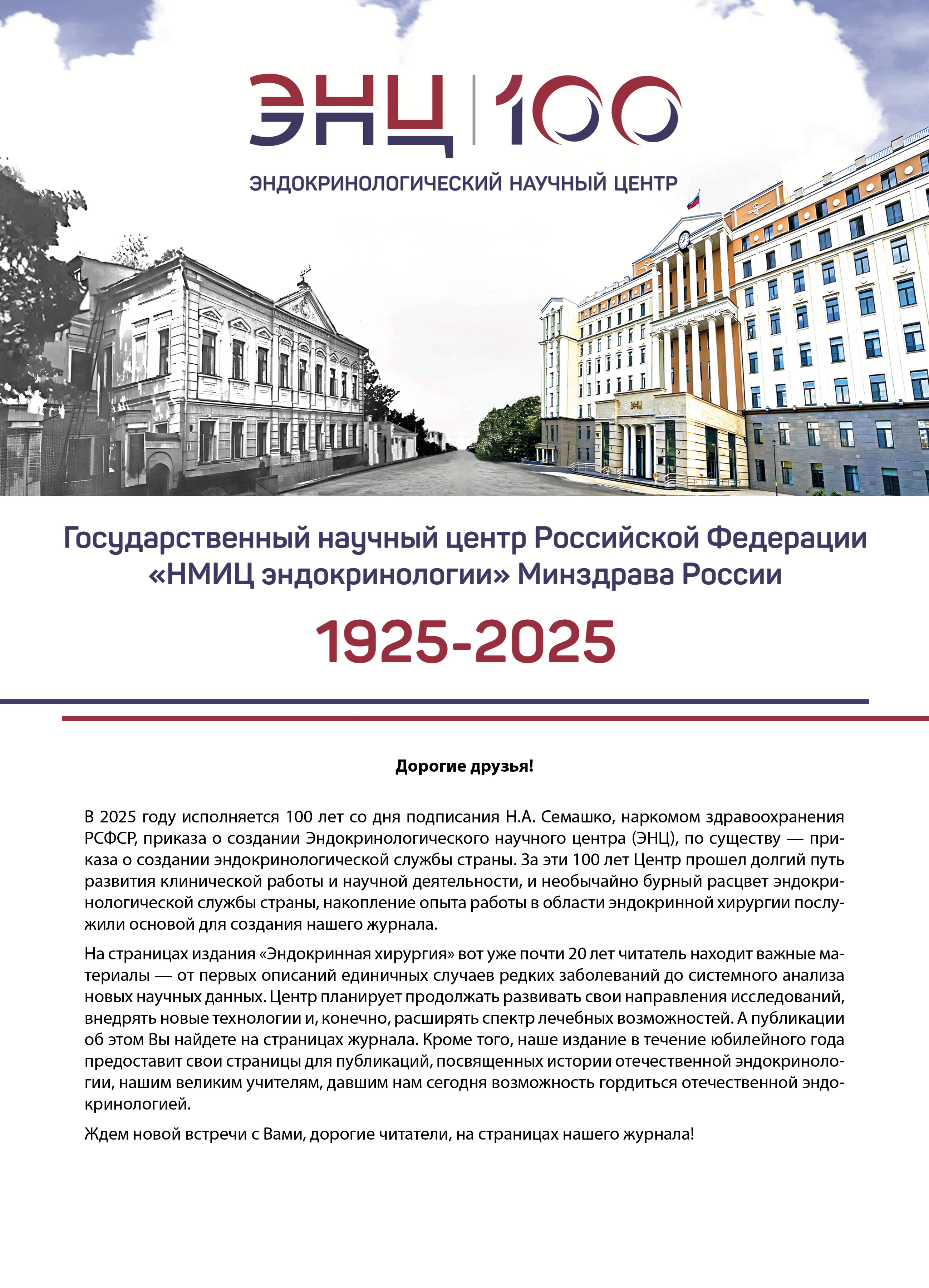 ЭНЦ_100. Эндокринологический научный центр. Endocrine Surgery. 2025;19(1):1. (In Russ.)