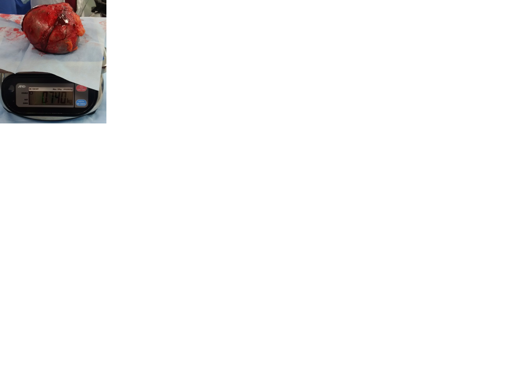 Нами оперированы 8 детей с патологией надпочечников: трое больных с синдромом Гиппеля–Линдау; один ребенок по поводу инциденталомы (по итогам морфологии оказавшейся нейрофибромой); один ребенок по поводу эндотелиальной кисты, один – по поводу первичного гиперальдесторонизма, один – по поводу узелковой гиперплазии коры надпочечников, и одна девочка 16 лет оперирована по поводу адренокортикального рака (рис. 3 а, б). В основном адреналэктомия выполнена лапароскопически, дважды операция выполнена открыто – один больной был с параганглиомой (опухоль располагалась на аорте, что обусловливало крайне высокий риск кровотечения). В случае адренокортикального рака выполнена люмботоракофренулотомия (рис. 4).