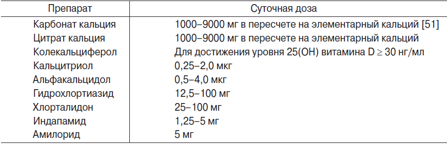 Таблица 2. Препараты, использующиеся при стандартной схеме терапии гипопаратиреоза
