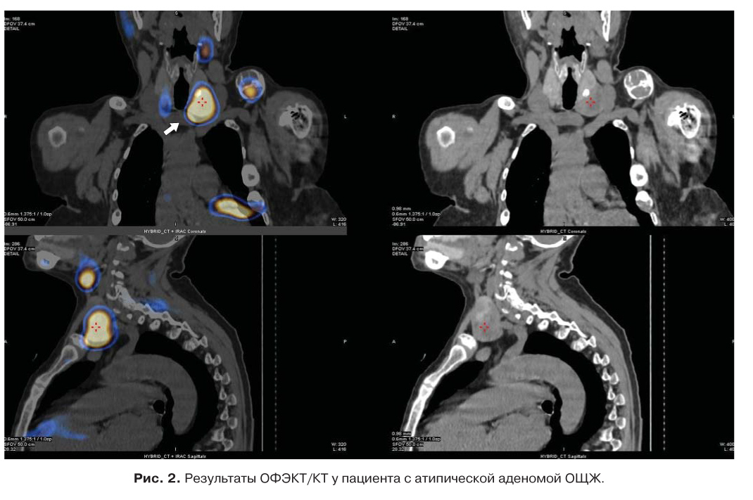 2. Рис. 2. Результаты ОФЭКТ/КТ у пациента с атипической аденомой ОЩЖ. | |